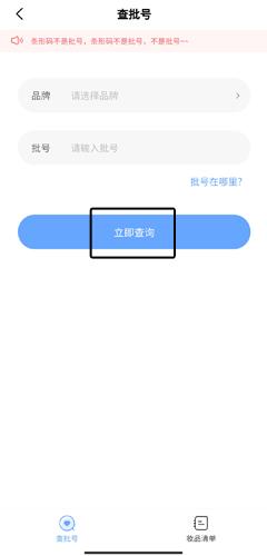 2、在查批号页面中输入牌子和输入批号,点击立即查询按钮就可以查到了。