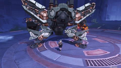 把进度条打满之后,BOSS会立刻展开28元素量的冰盾,并进入蓄力状态,蓄力18秒后,若冰盾还未被破除,则会发动强力攻击,然后回到初始状态。