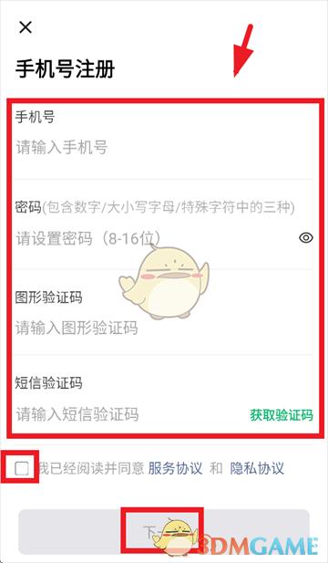 3、输入手机号,密码,图形验证码,短信验证码。