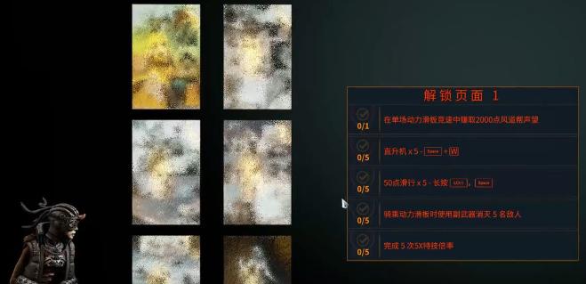 第1个任务是单场动力滑板竞赛,赚取2000点声望,先切出小米兰,选用动力滑板启动器,打开地图之后,随便标记一个图标,切换翅膀飞过去即可。每一个紫色图标的位置全部都会有一个负责滑板竞赛的阿布,跟他互动之后就可以开始比赛。左侧会提示需要穿过的门数量,还有时间限制,每穿过一个门就会增加时间,只要用方向键还有跳跃,控制好滑板,别错过这一个门就可以拿到2000个声望。第2个任务就是完成5次直升机动作,所谓的直升机就是滑板特技。重点是连贯的操作,中间不要松开,练习几次之后就会熟练。