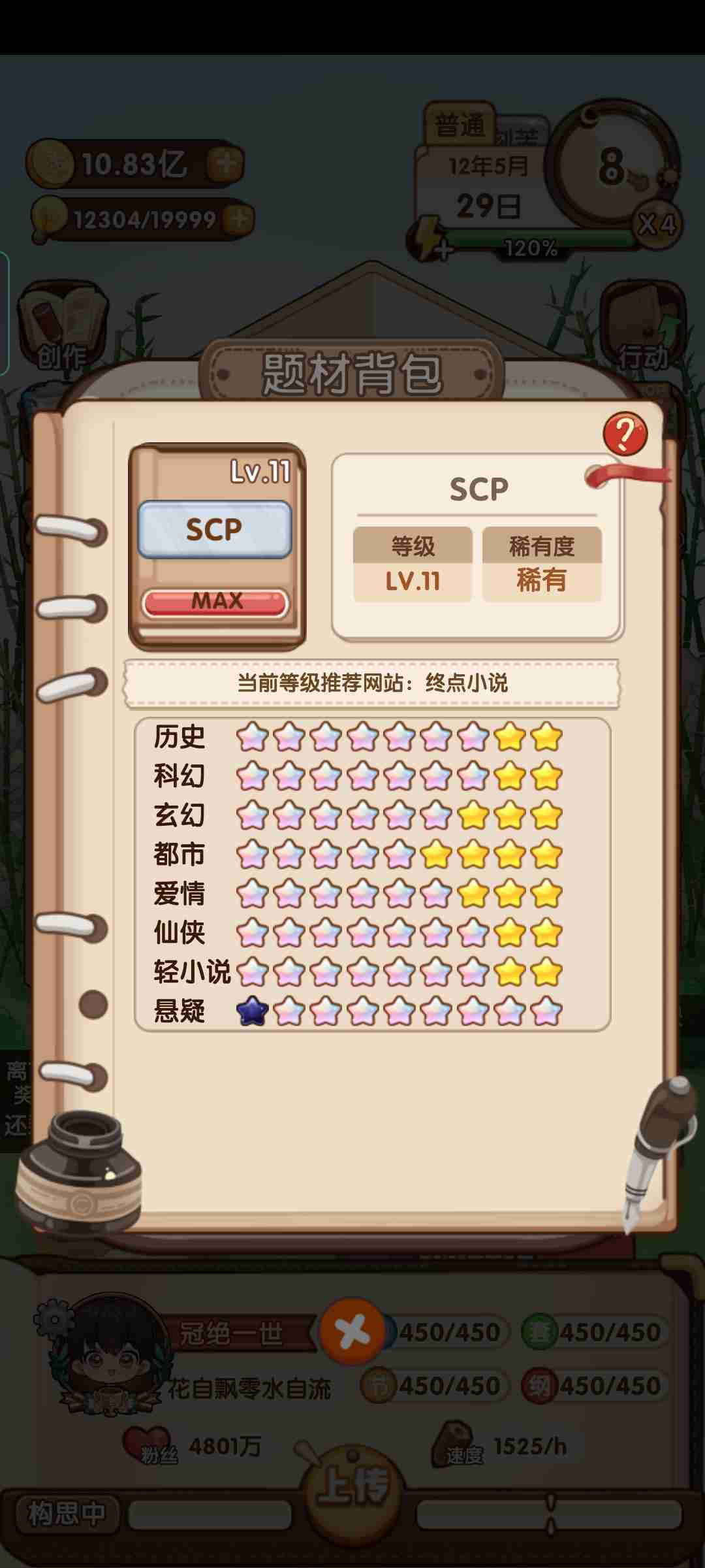 书籍完结时必定会奖励一部分你当前书籍使用的题材,所以想培养某个题材,就可以多用这个题材创作。