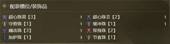 技能配置方面,挑战护石Ⅱ作为关键组件,配合装备自带的超心珠III、超心珠II与多枚浑身珠,成功堆叠出挑战者技能等级5,大幅提升怪物倒地或硬直状态下的攻击力。 痛击珠与守势珠的组合进一步激活痛击状态下的输出潜力,缓冲珠则有效缓解剑形态格挡时的耐力消耗,确保在高压战斗中维持稳定的进攻节奏。