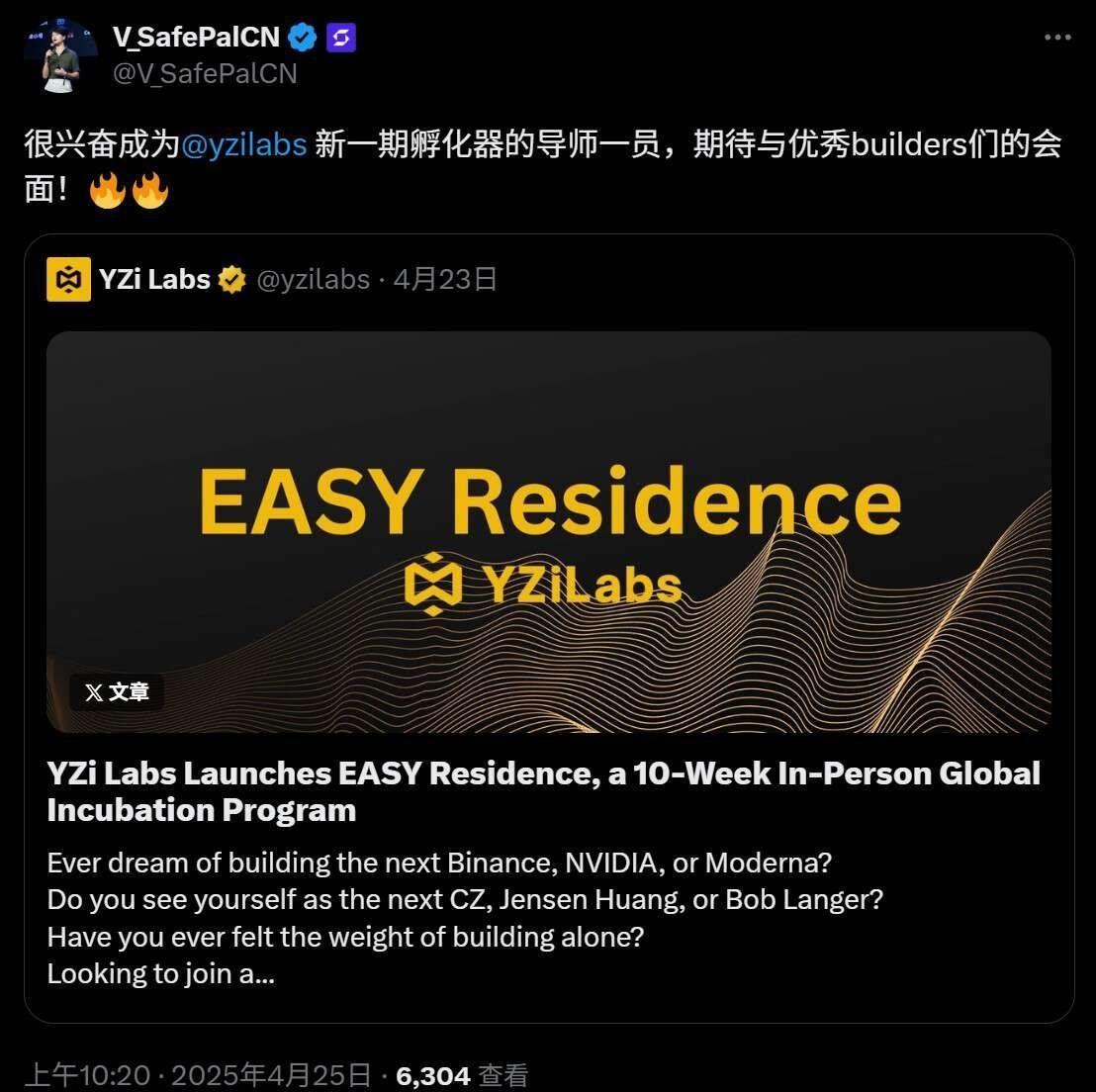 值得注意的是,就在 4 月份,SafePal 联创 Veronica 还成为 YZi Labs 新一期孵化器的导师,这在某种程度上也反映出其与 Binance 系 VC 的长线关系维系与行业影响力。