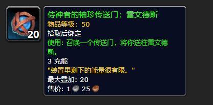 - 09-20《魔兽世界》侍神者的袖珍传送门有什么用