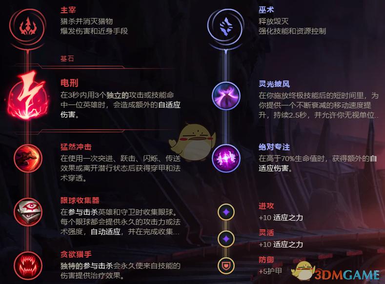 Levi的卡兹克放弃了黑暗收割符文,这个符文前期伤害大幅削弱后,不再适合卡兹克这种追求爆发的刺客英雄,电刑配合穿甲三件套,能够让卡兹克在前中期都有极高的伤害。而卡兹克后期本身就是寻找机会打收割的英雄,他的E技能有刷新机制,并不依赖黑暗收割的那点伤害。