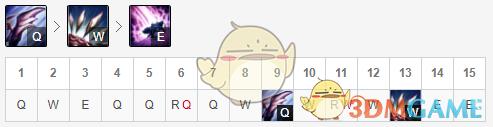 Q技能进化后可以返还冷却时间,让卡兹克有机会打出双Q的爆发,加强自己的收割能力,因此优先进化。W技能的减速效果在最近大幅加强了,让卡兹克在团战中也能够打出不错的poke效果,中期进化拿来打团。E技能是卡兹克在战场上收割的本钱,让他参与击杀后有机会迅速起跳。