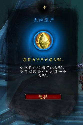 先知遗产(元素):获得自然守护者天赋。如果你已经拥有此天赋,则可以选择同层的另一个天赋