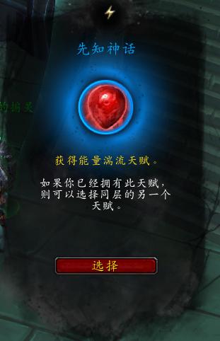 先知神话:获得能量瑞流天赋。如果你已经拥有此天赋,则可以选择同层的另一个天赋