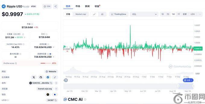 在Ethereum AAVE V3中提供RLUSD可以获得持续约11%的APR收益。RLUSD是由Ripple Labs发起的1:1美元挂钩法币支持型稳定币,其大部分准备金由美元、短期国债等高流动性资产组成,并严格在纽约州信托公司监管框架内运作,因此在稳定性和安全性上有所保障。RLUSD的发行量已突破7亿美元,同时在Curve上拥有超过5000万美元的流动性,这意味着用户建仓时承担的滑点成本较低。