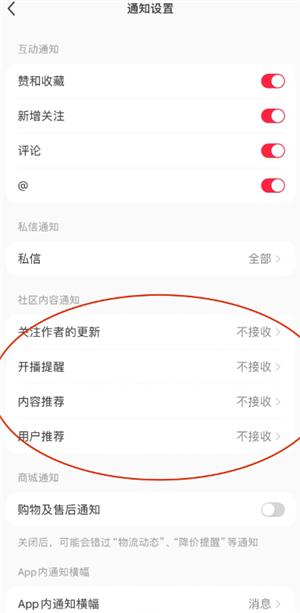 小红书-设置-通知设置,把社区内容通知全部关掉,整个世界都安静了。