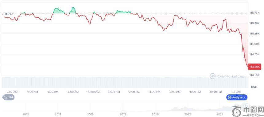 比特币(BTC)日线图,CoinMarketCap 截图,UTC 时间 2025 年 9 月 22 日 10:06。:CoinMarketCap