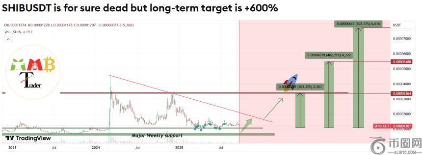 据市场观察人士分析,如果柴犬价格能够突破关键阻力位,其长期目标涨幅有望超过600%,这一目标与SHIB的历史峰值直接挂钩,被分析师视为重要参考点。