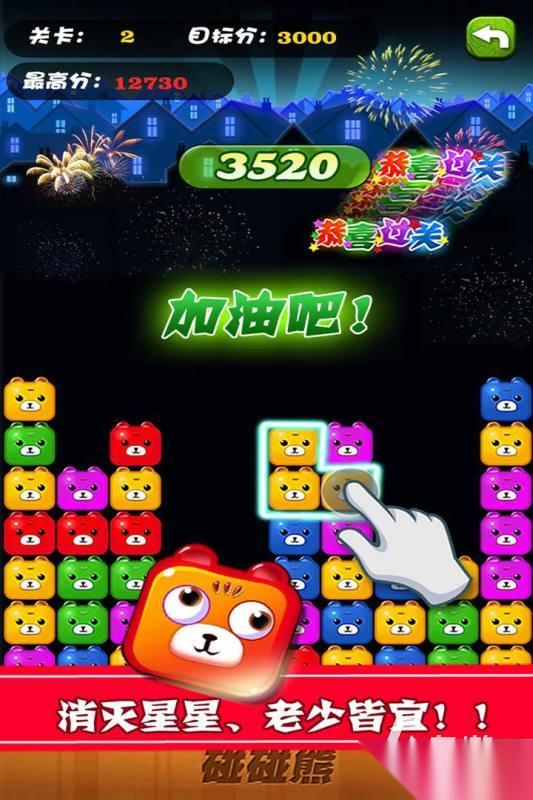 《碰碰熊》当满屏都是那种形态迥异奇趣的小熊,你能忍住不去玩耍吗?从音效到画质,甚至是每一次消除时小熊产生的表情,都具有一种甜到心的萌态感,而且游戏还运用了斑斓的色彩对小熊进行了标识设计,其中加入的道具甚至能够改变任意位置小熊的颜色,没有紧张的倒计时,你尽管有序不紊向着高分发起冲击。