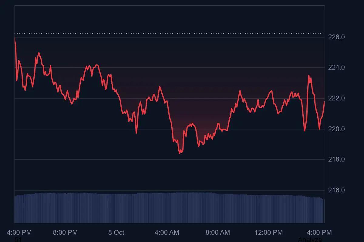 Solana (SOL) 目前的成交价在 222 美元至 234 美元之间,由于价格上涨,市场对其提供了强劲支撑。ETF
