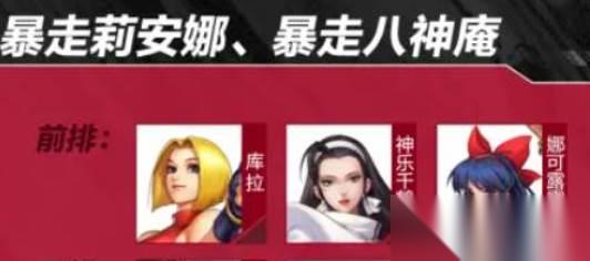 面对暴走两人组,他们的效果是击杀了我们的角色之后就会有一段狂暴立即满怒并再次放大。对于这这种敌人则应该用强力奶妈加上坦的组合,比如说是这个玛丽、千鹤、娜可露露、火舞、拉尔夫加上八神的组合。