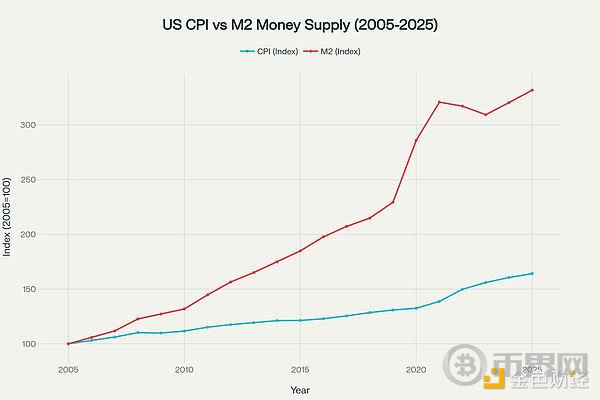 但在我看来,通胀并非值得关注的图表。它完全转移了人们对真实情况的注意力。Strive的Jeff Walton一针见血地指出消费者价格指数(CPI)与广义货币供应量(M2)之间的背离。