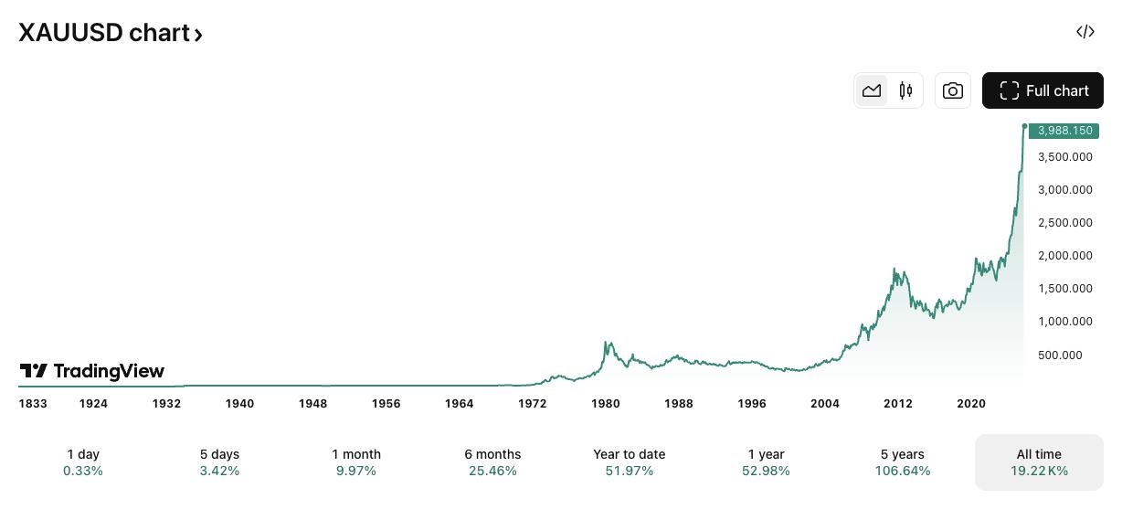 黄金目前正经历自 20 世纪 70 年代末以来最强劲的年度涨势,最近突破了历史最高纪录每盎司 4,000 美元以上——今年迄今已上涨 50% 以上——作为其所谓的“贬值贸易” 获得关注。