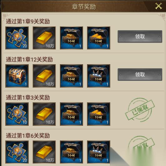 章节奖励:通关章节指定关卡,可以获得大量宝具碎片;