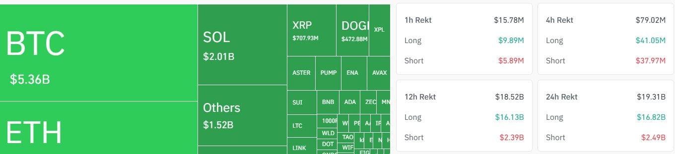 根据Coinglass 的数据显示,市场在短短 24 小时内就清算了价值 193.1 亿美元的加密货币仓位。其中,168.2 亿美元为杠杆多头仓位,24.9 亿美元为空头仓位。