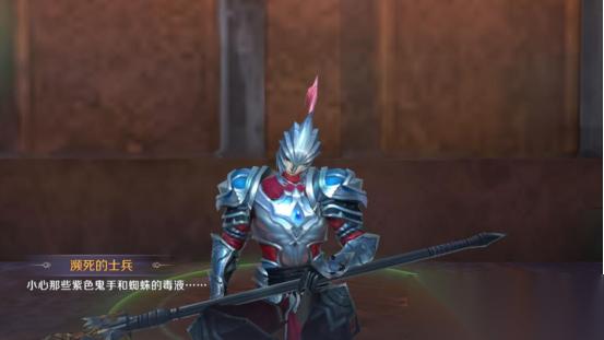 不要忽略门口奄奄一息的士兵,点击交谈士兵会给我们一些提示“小心紫色鬼手和蜘蛛的毒液”,这正是后续我们会遇到的挑战。
