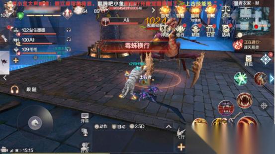 然后,我们会遇到第一个BOSS“鬼面狼蛛”。在打这个BOSS时,妖兽一定要冲上前去持续使用技能吸引鬼面狼蛛,为队友创造良好的输出环境,即在鬼面狼蛛的身后持续输出。