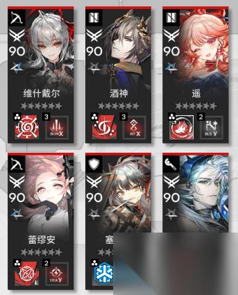 酒神1、蕾缪安1、维什戴尔1、塞雷娅1(临光1)、遥2(夏栎1)