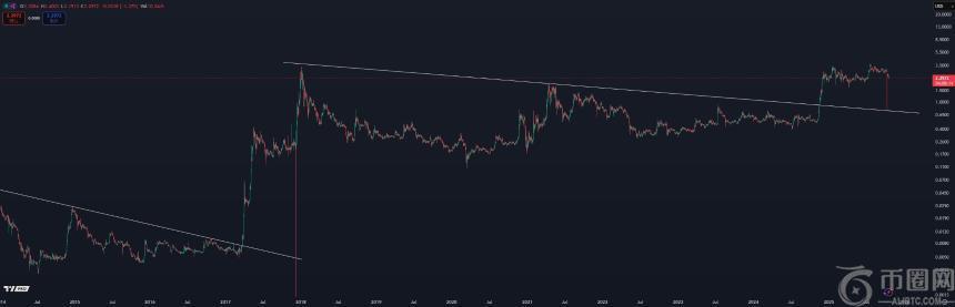 Kaleo的分析图表显示,10月10日币安的暴跌促使XRP重新测试了一条持续八年的下降趋势线作为支撑位。在重新确认支撑位后,XRP出现强势反弹,显示出强劲的上涨动能。根据他的图表预测,短期内XRP可能突破3美元大关。