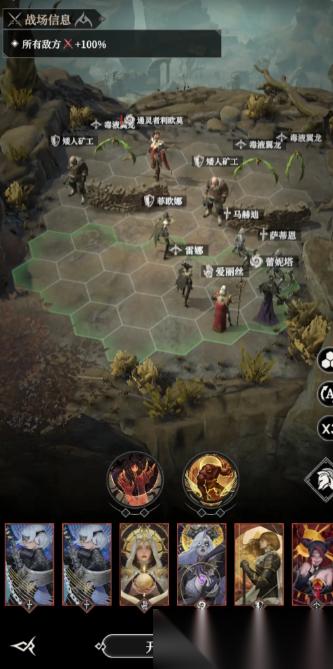 战斗期间玩家总共有两种战略方案,首个方案是玩家强化暗奶的控制效果,直接通过平移角色的方式,将暗奶移动到左侧,直接控制左上角的近战骷髅,随后,玩家需要携带寂灭这个角色,通过开局的全场眩晕以及全场吸引,来减少前期承伤压力。