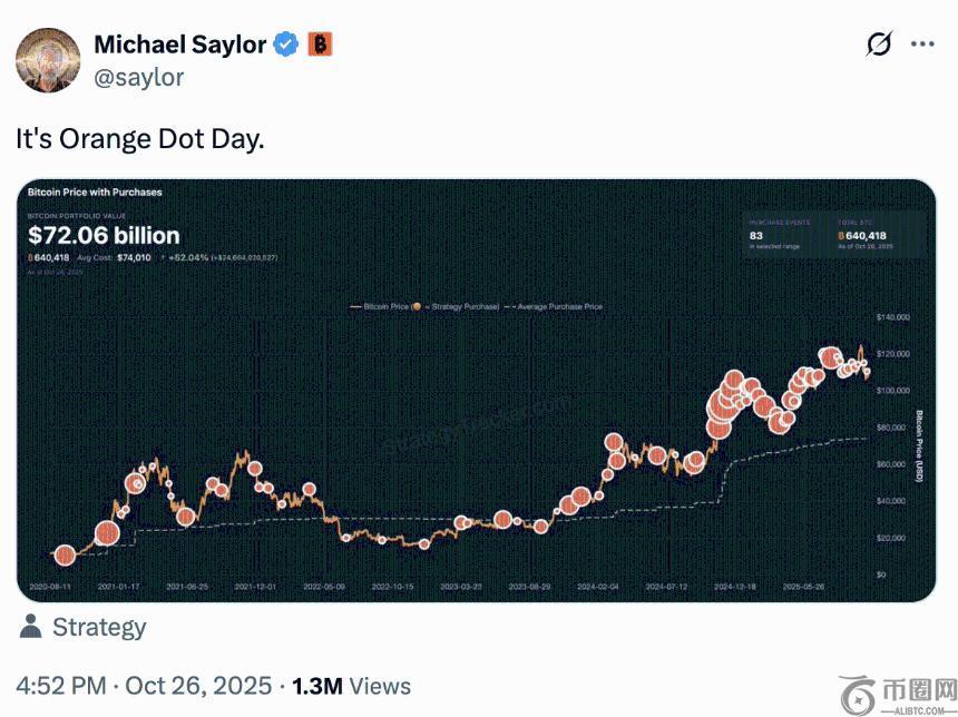 事实上,就在宣布这一消息的前一天,塞勒就在 X 上透露了他的标志性暗示,发布了 Strategy 的比特币投资组合追踪器,并配文“这是橙点日”。