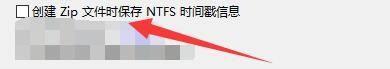 4、然后找到右侧中的"创建Zip文件时保存NTFS时间戳信息",将其小方框勾选上。