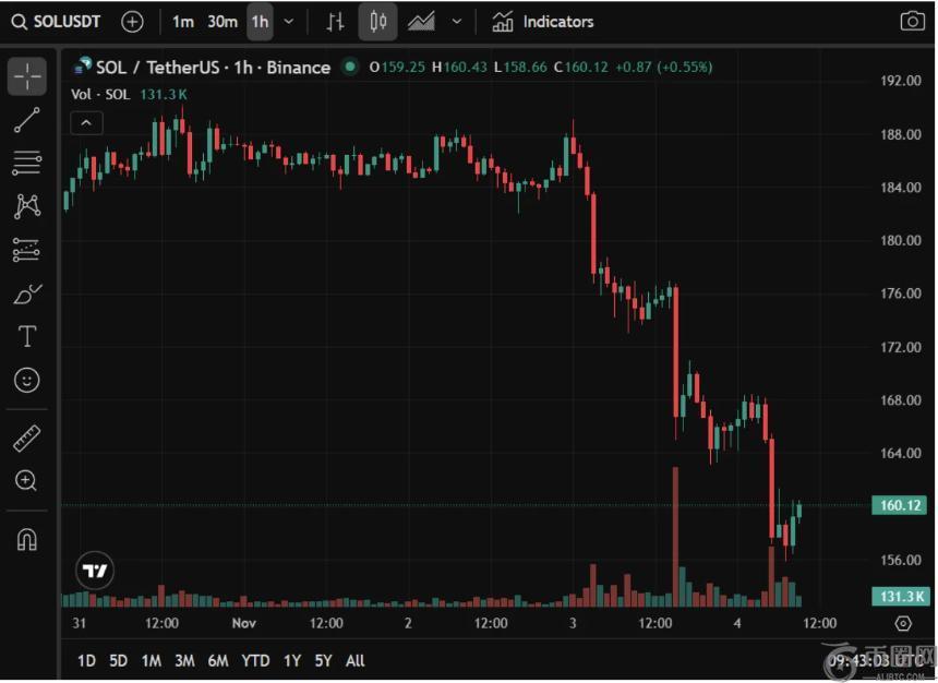 截至2025年11月,Solana当前价格继续保持在159美元上方,展现出强劲势头。