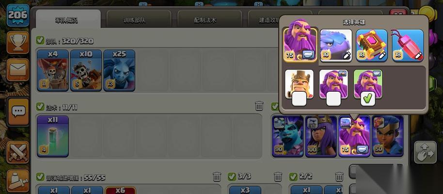 不同的兵种组合有着不同的战术优势。选择合适的兵种组合需要根据您对敌方防御建筑的了解来决定。如果对方有较多的防空炮塔,那么选择多带飞行兵种可能会更有效。