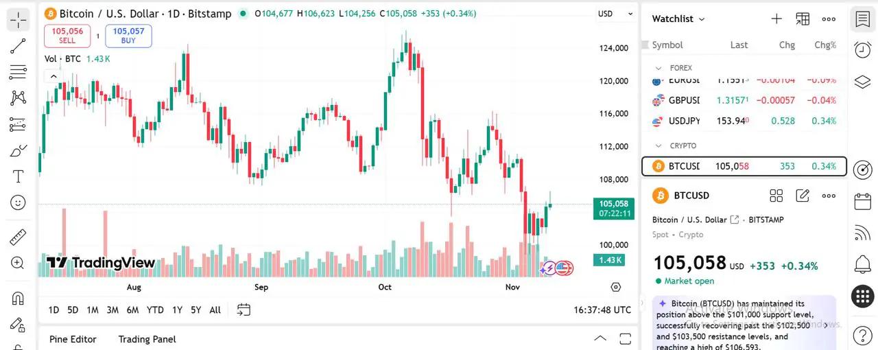 比特币交易价格约为 10.5 万美元,受到 2 万亿美元市值的支撑。市值