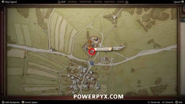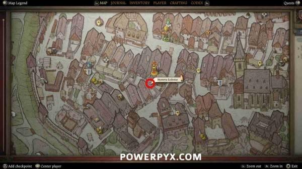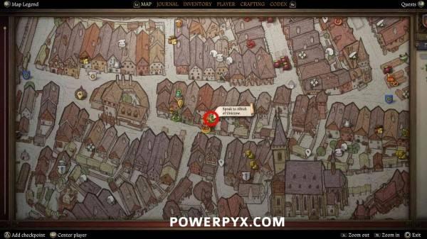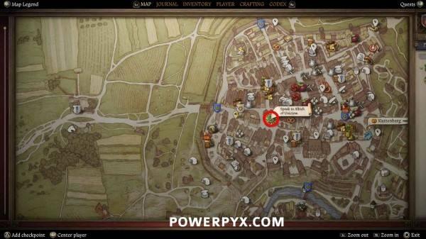 前往库滕堡城内的药剂师家,地图上会显示标记,与药剂师店内柜台后的商人交谈。