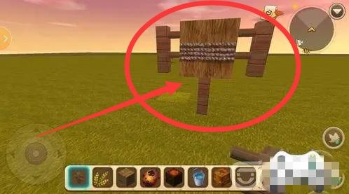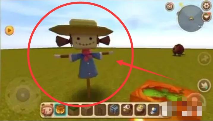 进入手机迷你世界,找一块空地,放上1个【草垛】,作为稻草人的身体。