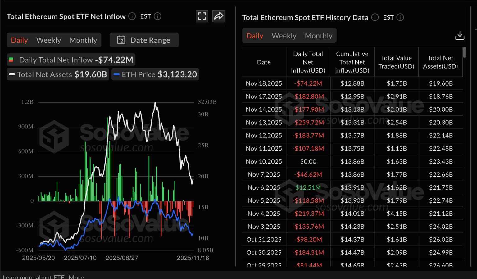 数据聚焦:比特币、以太坊 ETF 资金流出预示需求减弱