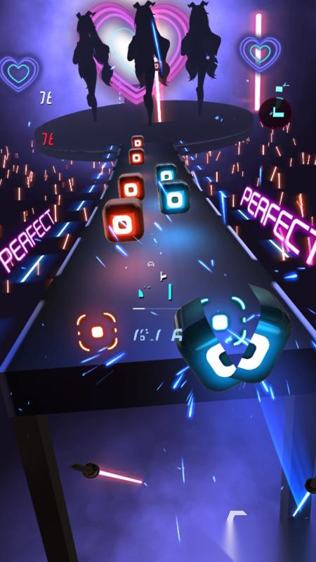 《节奏快斩》这部作品可以说把关于音律的节奏感,进行了大放异彩的设计呈现,在音乐的轨道以及谱面上,更是耳目一新的引入了光影迷离的霓虹灯效果,游戏中,我们将针对屏幕两端出现的音符节奏,同时双指进行左右开弓的点动,见证着一个个光耀闪烁的方块被完成切割。