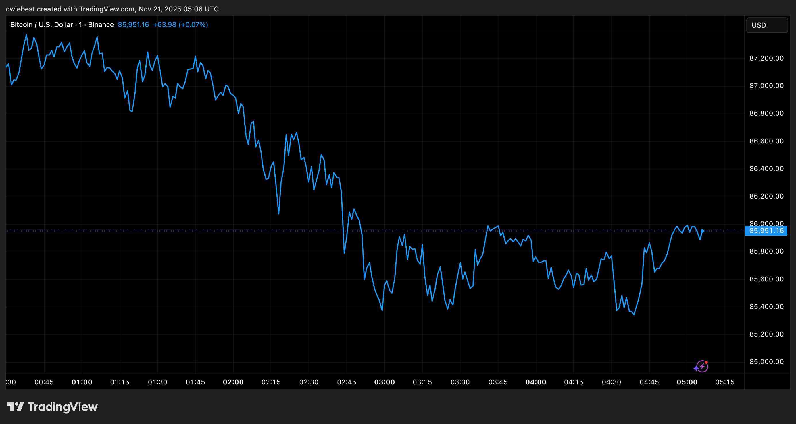 比特币价格跌破 86,000 美元 | :Tradingview.com 上的 BTCUSD